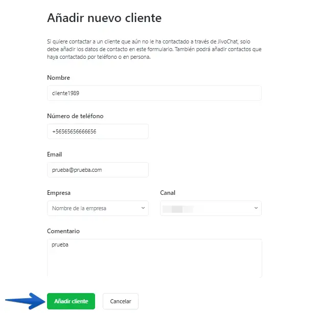 - Clic en "añadir nuevo cliente".