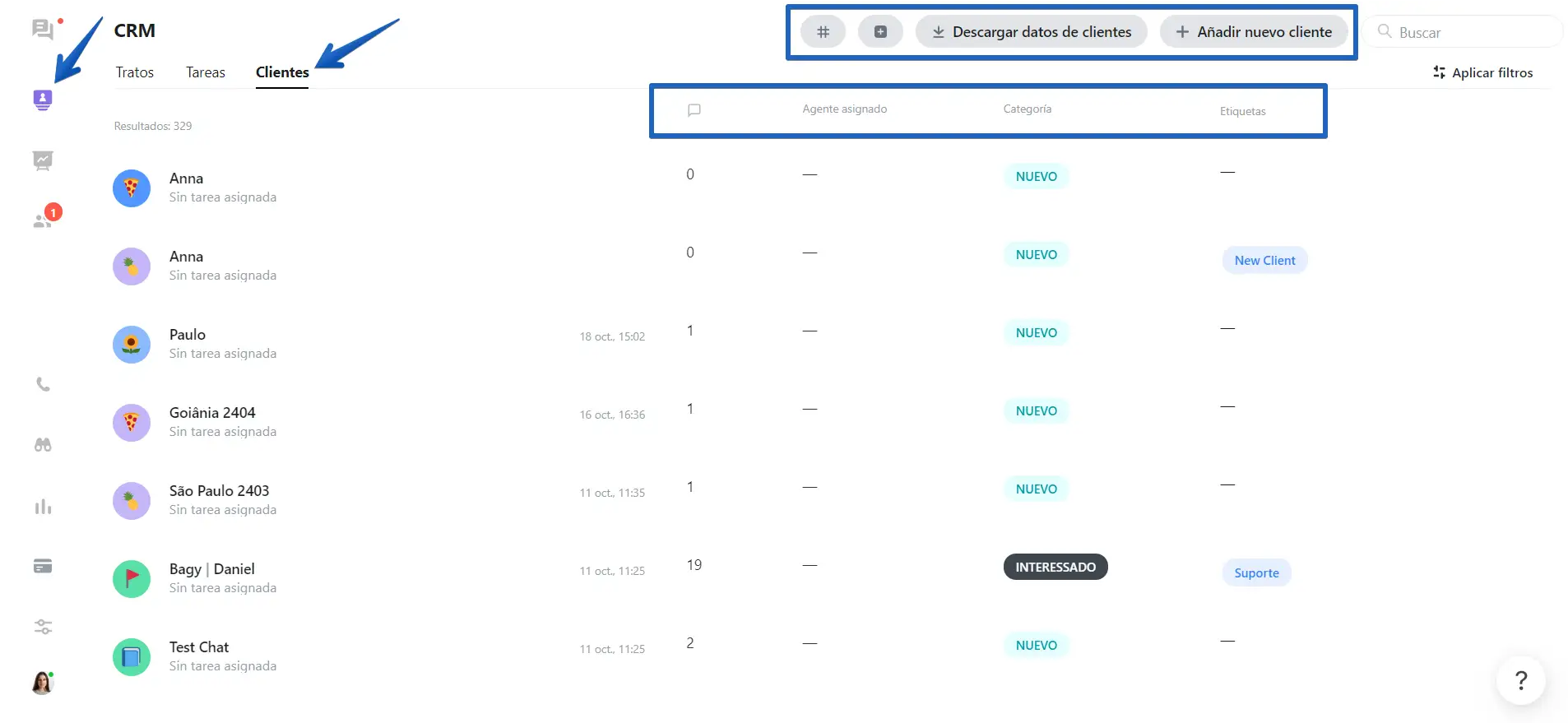 Además, puede agregar clientes nuevos manualmente, importar clientes y descargar los datos de los clientes existentes.
