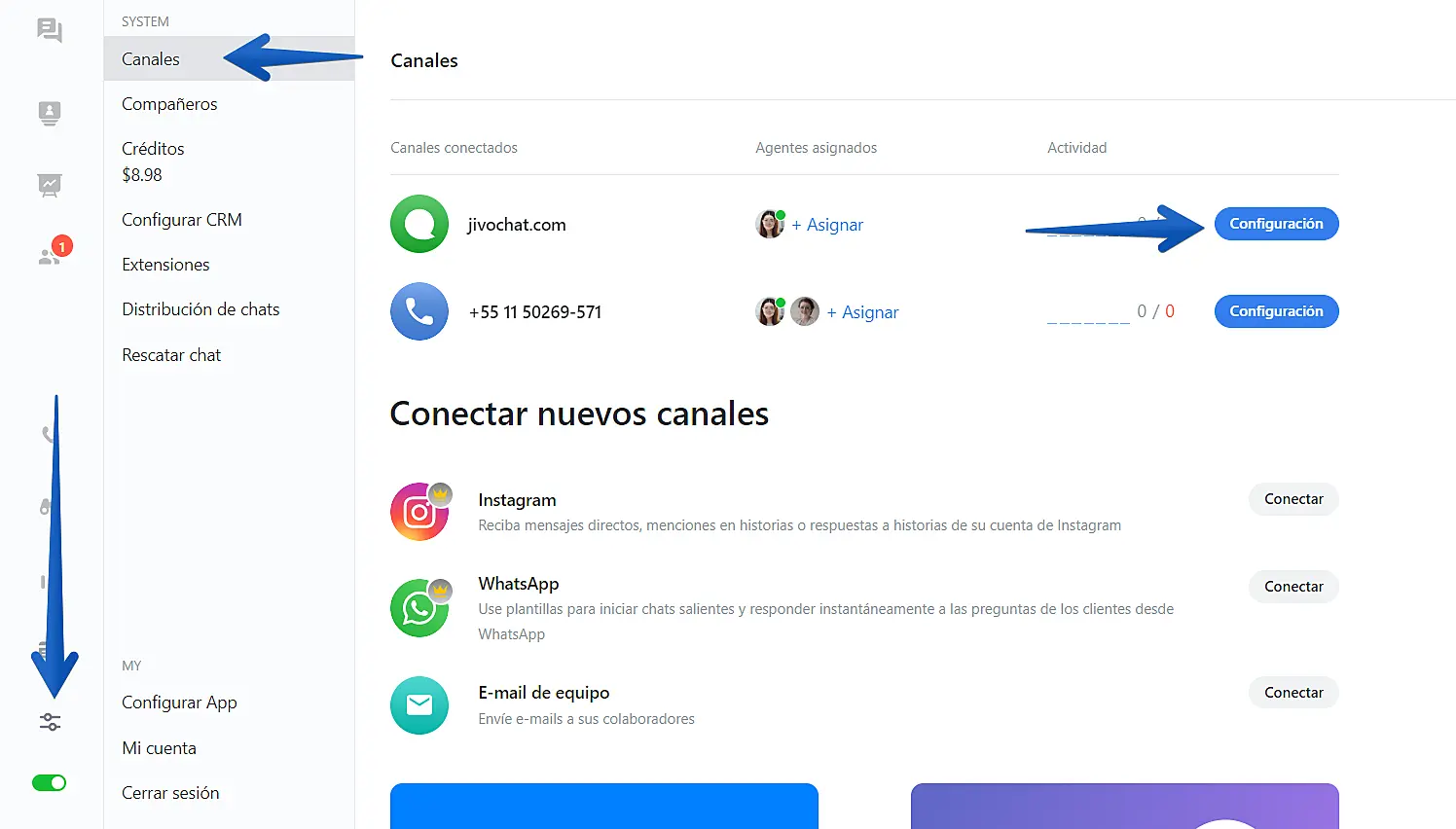 Abra la aplicación del agente y vaya a "Ajustes"-> "Caneles"-> "Configuraciones del canal":