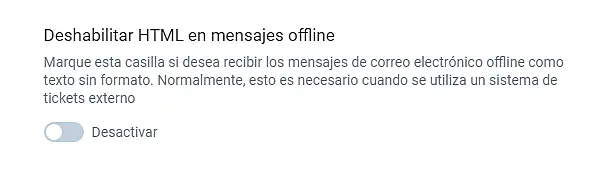 Cuando se activa esta opción, todos los mensajes offline llegarán en texto simple, sin los elementos gráficos.