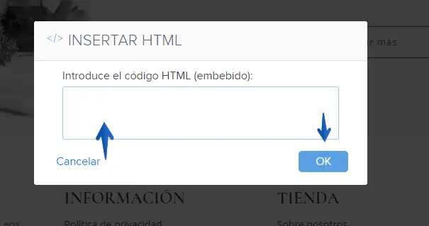 Aparacerá ahora un cuadro para colocar el código HTML de JivoChat