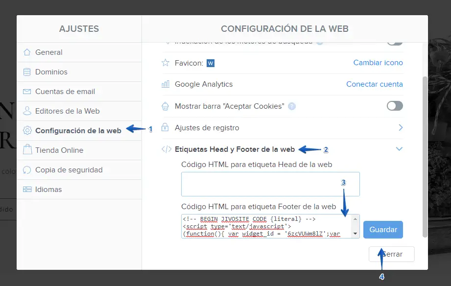 Configuraciones de la web-> Etiquetas Head y Footer de la web