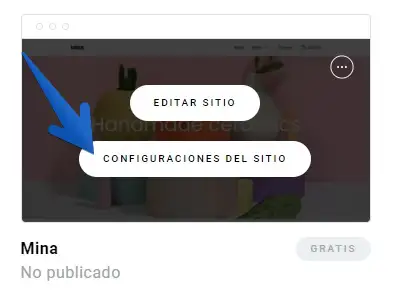 Acceda a su panel del creador del sitio web Zyro. Al acceder, vaya a Mis sitios, coloque el cursor sobre el sitio al que desea agregar el chat y haga clic en la opción Configuraciónes del sitio.