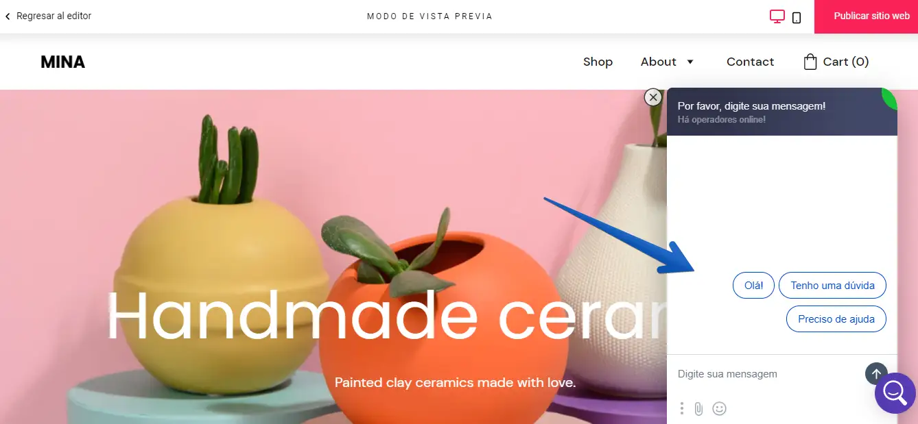 ¡Listo! ¡Así es como aparecerá JivoChat en su sitio creado en Zyro!