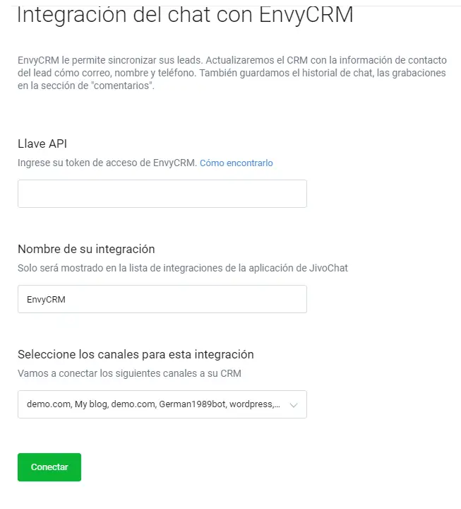 Ahora solo debe obtener la siguiente información de su sistema EnvyCRM: