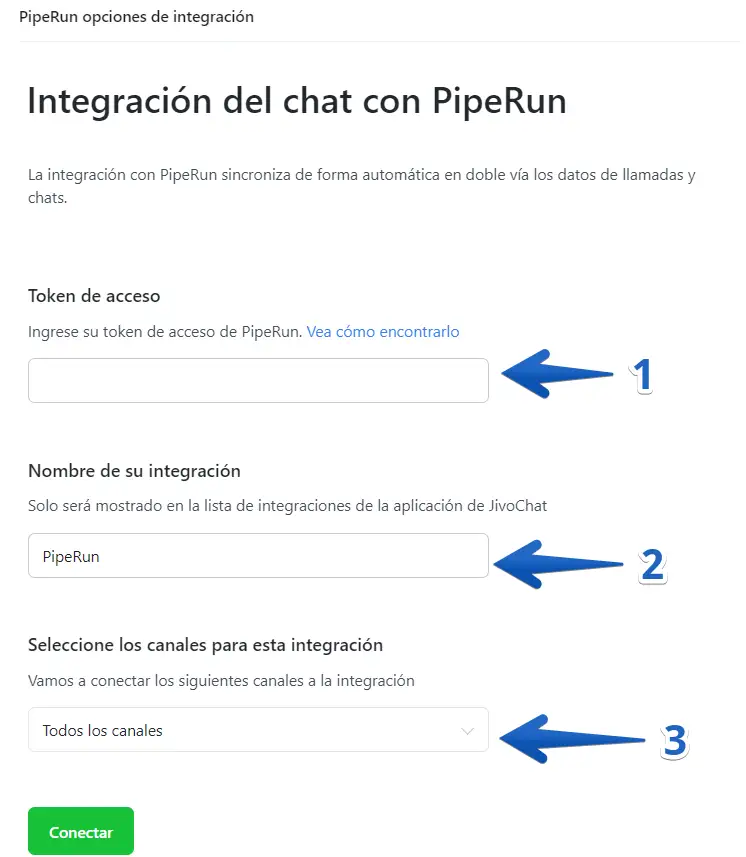 Método 2: Integración a través del panel PipeRun y Webhooks en JivoChat