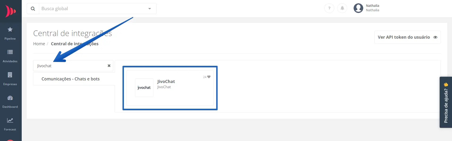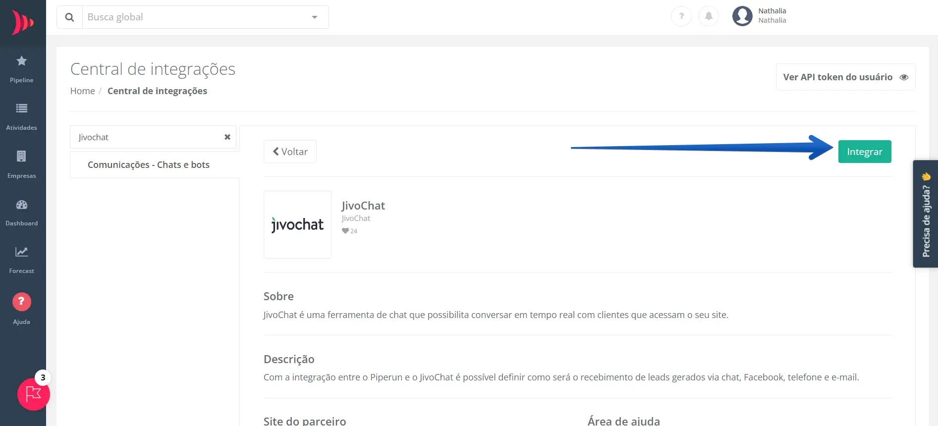 3. Después de seleccionar JivoChat, haz clic en "Integrar".