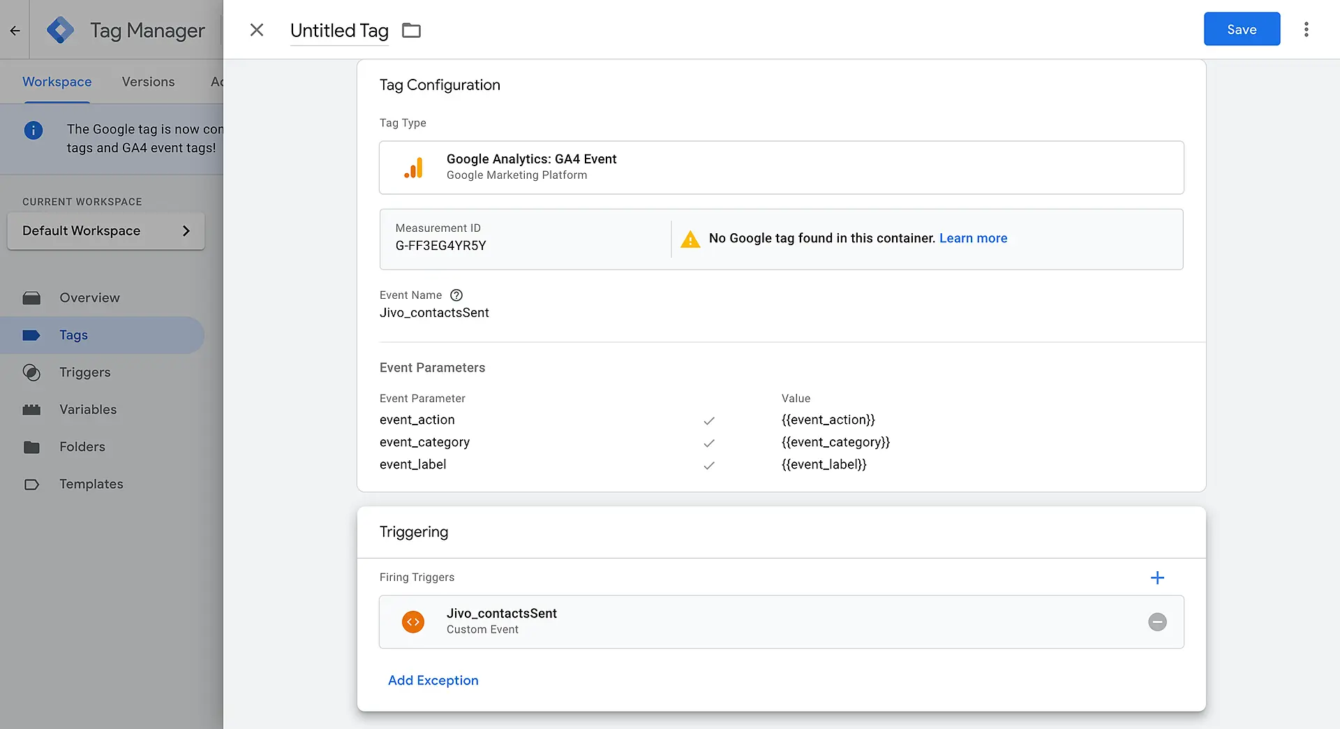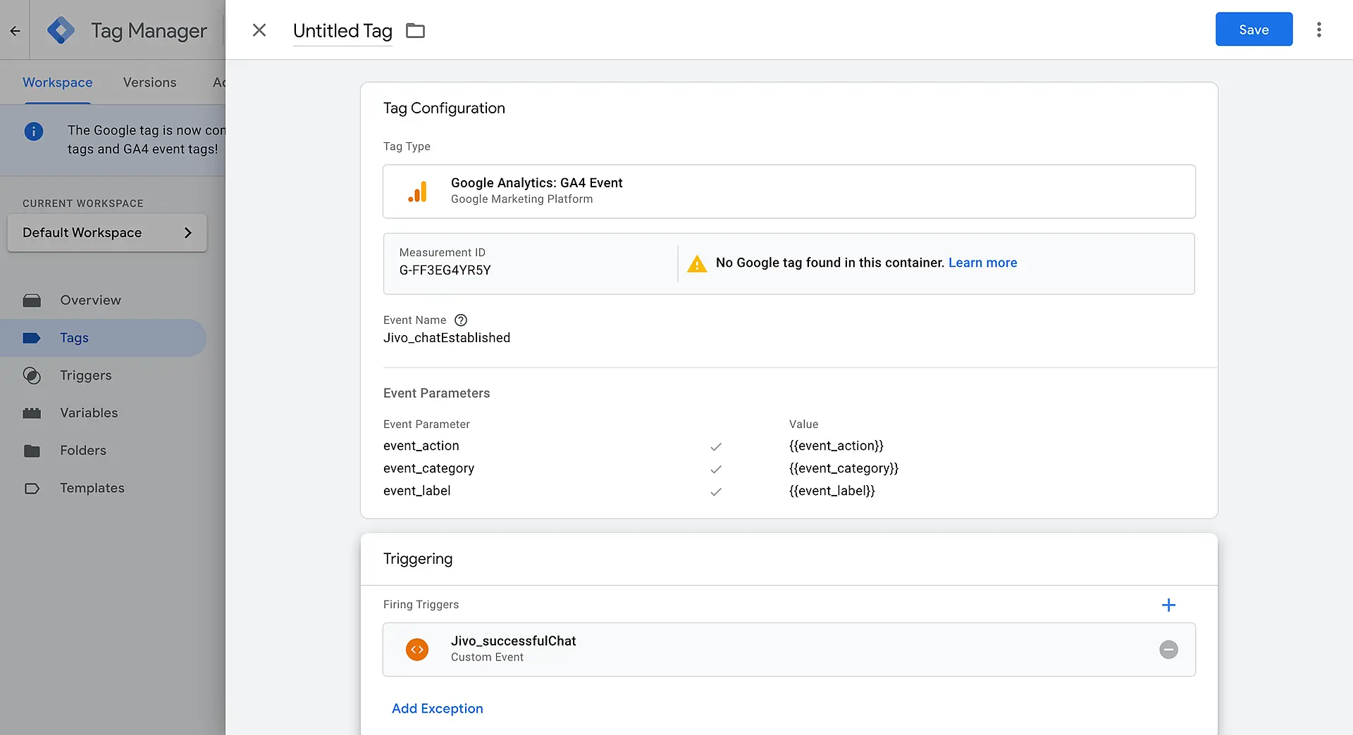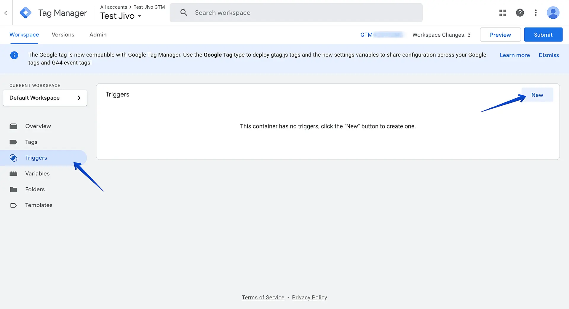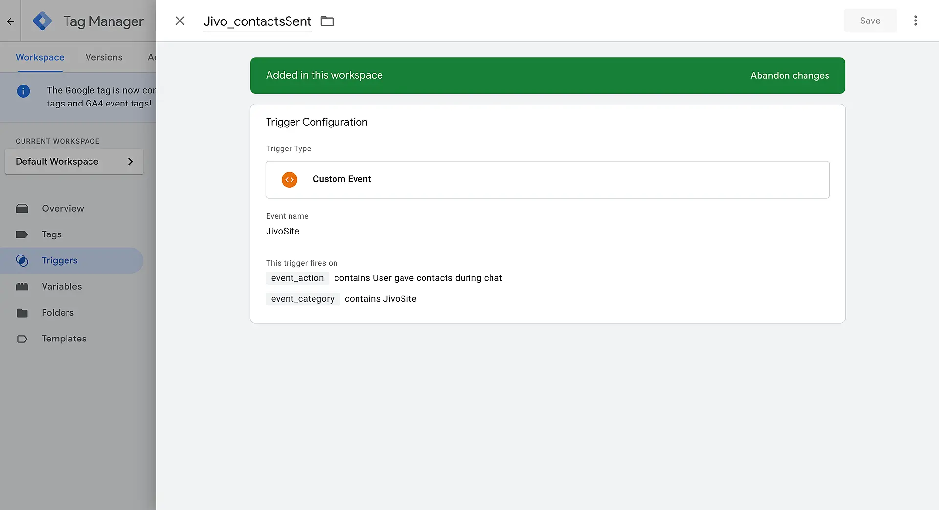 En este tutoriales le enseñamos cómo configurar disparadores o triggers para que pueda verificar los eventos de JivoChat cuando instala a través de Google Tag Manager.