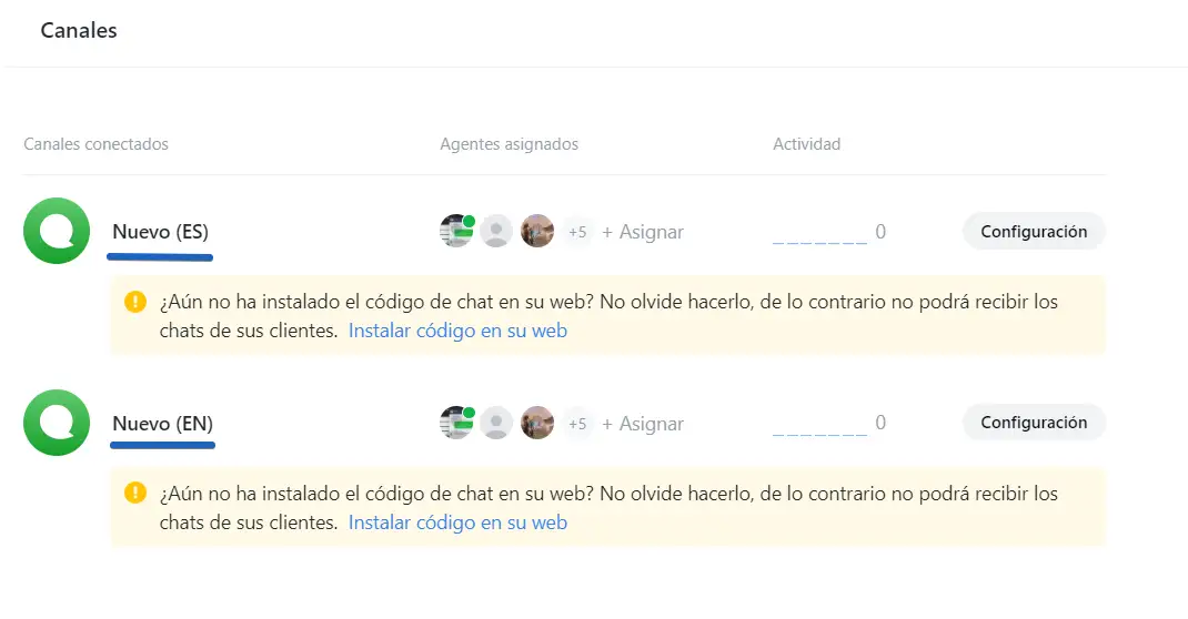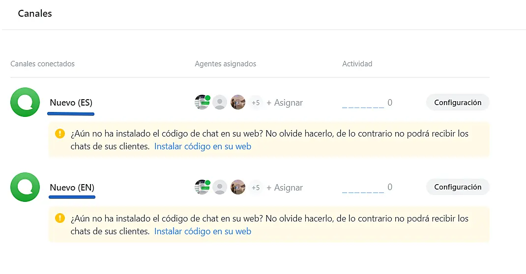 Al final, tendrá dos sitios web separados para cada idioma en el área de canales en nuestra aplicación de JivoChat.