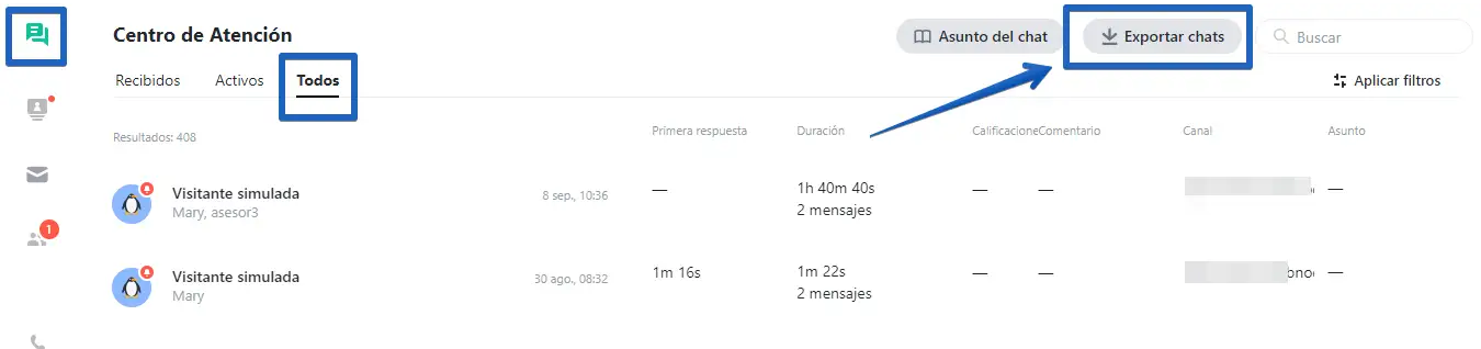 Vaya a la pestaña "Todos" de la sección Centro de atención y, si es necesario, filtre los chats que desea exportar.