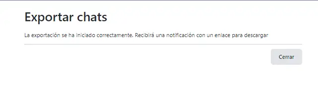 Aparecerá una notificación en la pantalla confirmando que la exportación se ha realizado correctamente, y en breve recibirá el enlace de descarga.