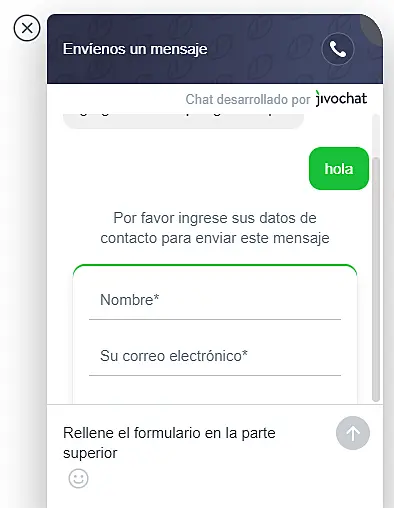 Luego de escribir un mensaje, recibirán la solicitud de dejar datos de contacto para poder enviar el mensaje. Esto es importante y necesario para que pueda contactar a los clientes por correo o por teléfono y completar su solicitud.
