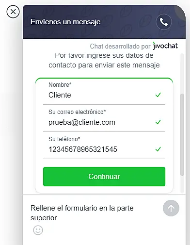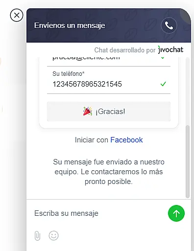 Si tiene alguna preguna o si quiere resportar un problema, puede contactarnos en info@jivochat.com o en el chat en nuestro sitio web.