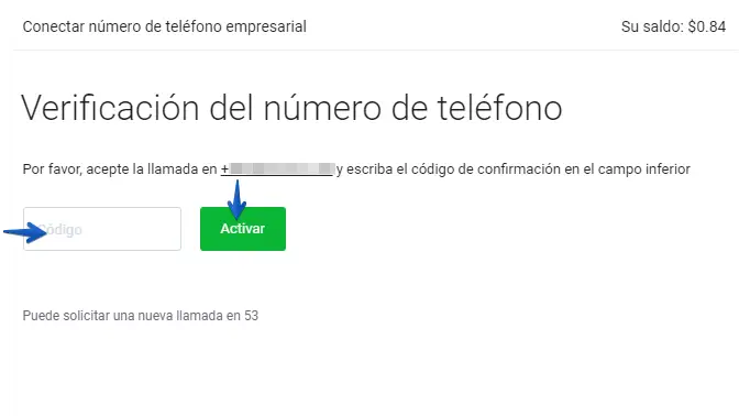 - Introduzca su número de teléfono en formato internacional y presione en "¡Jane, llámame por favor!" para recibir la llamada de un robot que le dirá el código de activación durante la llamada.