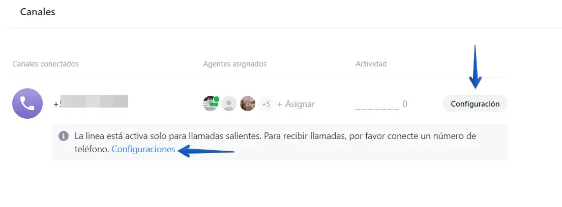 - Abra la aplicación del agente y vaya a "Ajustes"-> "Canales"-> "Número de teléfono". Haga clic en el botón conectar.